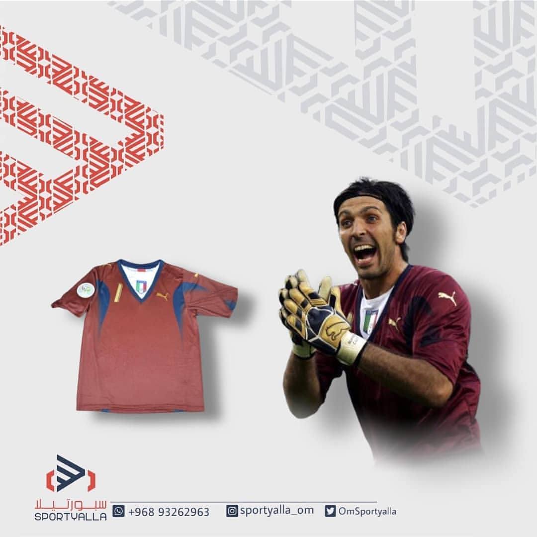 قميص جيجي بوفون مع المنتخب الإيطالي في كأس العالم 2006 كلاسيك مع إضافة اسم بوفون في الخلف ورقم من الامام والخلف